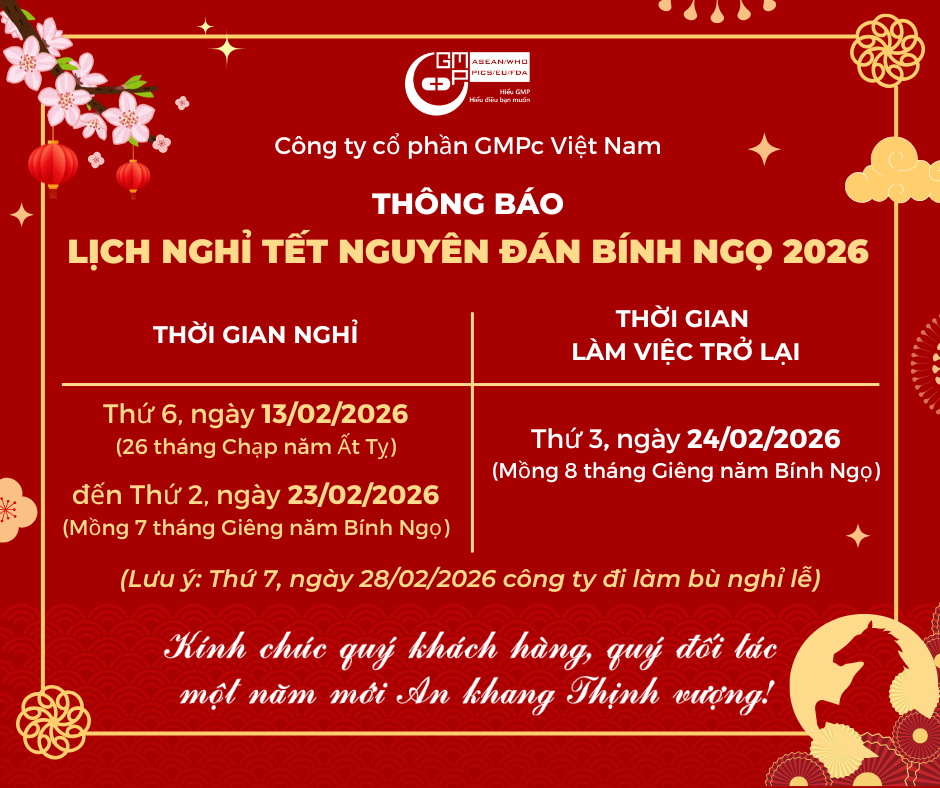 GMPc Việt Nam xin gửi tới quý khách hàng thông báo lịch nghỉ tết Nguyên Đán Bính Ngọ 2026 của công ty như sau: