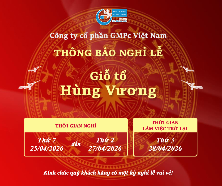 Công ty cổ phần GMPc Việt Nam xin chân thành cảm ơn Quý khách hàng đã tin tưởng, lựa chọn hợp tác, ủng hộ và giúp đỡ chúng tôi trong thời gian qua. Để tiện cho việc liên hệ và giao dịch của Quý khách hàng, GMPc Việt Nam xin trân trọng thông báo LỊCH NGHỈ LỄ GIỖ TỔ HÙNG VƯƠNG NĂM 2026 như sau: